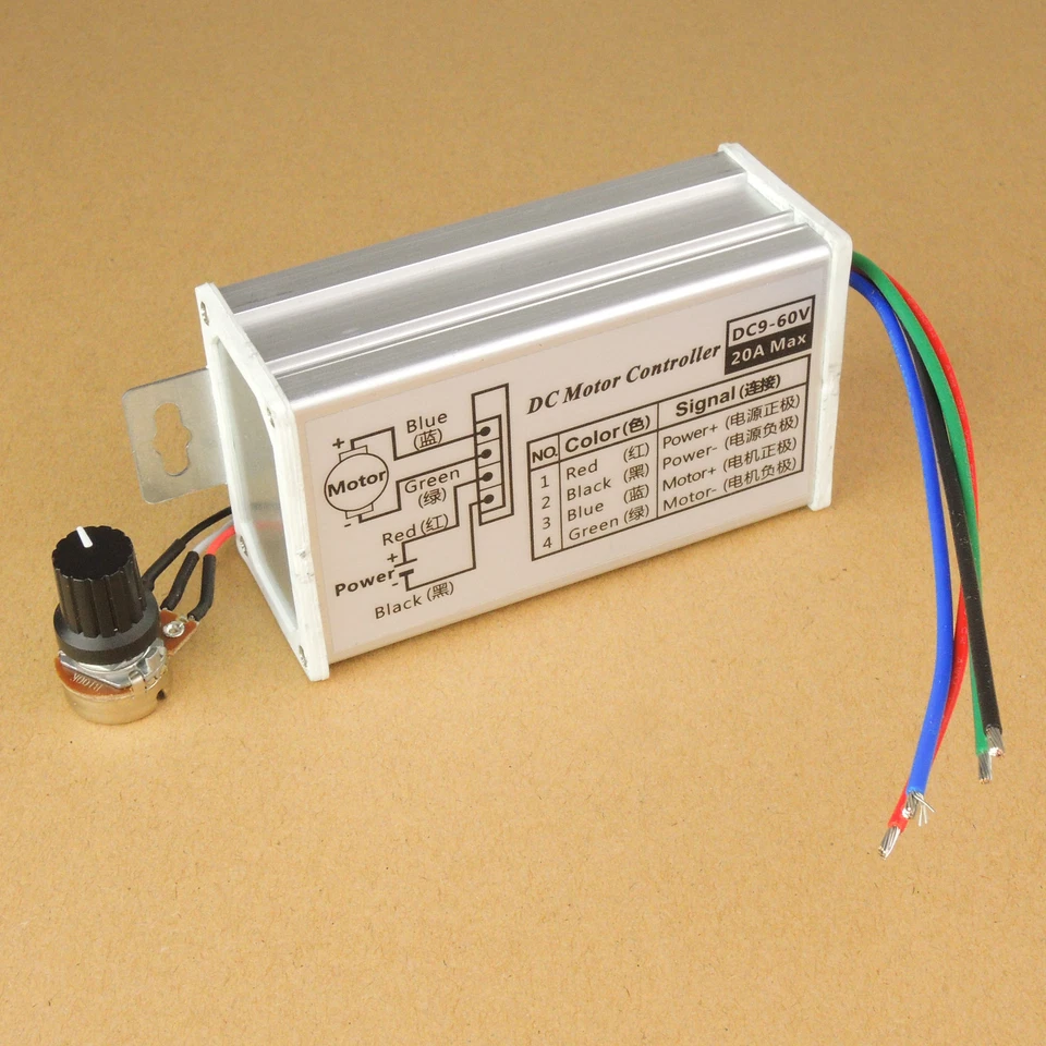 PWM DC Brush Motor Stepless Variable Speed Controller Switch 12V 24V 48V 60V 20A