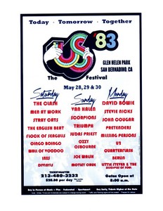 THE US 1983 FESTIVAL 8.5X11 GLOSSY PHOTO POSTER REPRO BOWIE U2 CLASH NICKS WALSH