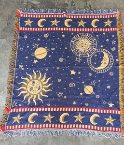 VINTAGE CELESTIAL THEMED WOVEN THROW BLANKET SUN MOON AND STARS 47" x 59"
