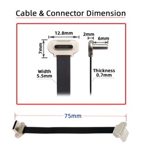 USB C Short Flat Cable USB2.0 TypeC PD 65W Fast Charge Data Extension Cable 75MM