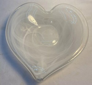 Lavoraazione Arte Murano Large Art Glass White Heart Shaped Bowl Made In Italy