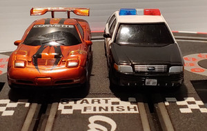 Highway Patrol Police Ford Crown Vic & 2002 Corvette G5-R 1:43 Carrera Go Track