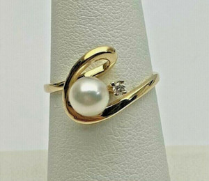 14K Yellow Gold 6mm Cultured Pearl Diamond Accent Ring Size 2.2 Grams Size 6