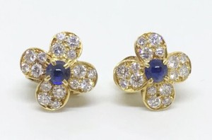 0.96ct Natural Round Diamond Sapphire 14k Yellow Gold Wedding Stud Earring