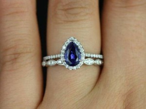 2.52Ct White Pear Diamond Lab Created 14K White Gold Engagement Bridal Set Ring