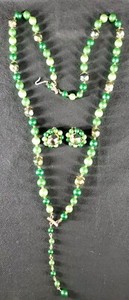 Vtg Green Faux Pearl Beaded Necklace Starfish Gold Tone Star Accent Earrings Set