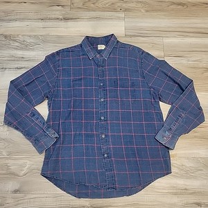Faherty Shirt Men XL Blue Red Plaid Windowpane Ventura Washed Long Sleeve Button