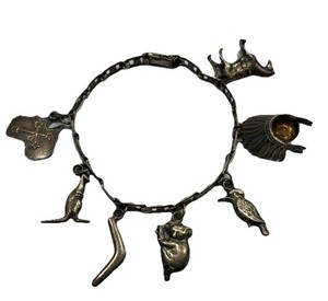 Vintage STERLING SILVER CHARM BRACELET - 7 Charms AUSTRALIAN Icons 17.57 grams