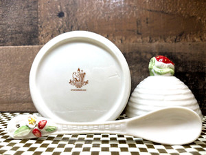 NEW BALEEK Irish Parian China Strawberry Bee Hive Server Sugar/Jam/Honey NIB