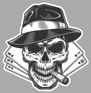 TETE DE MORT POKER FACE JOUEUR QUINTE FLUSH MAFIA AUTOCOLLANT STICKER PF085