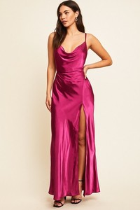 Lioness “Miami Vice” Fuchsia Satin Cowl Neck Slip Dress – Size XXL NWT