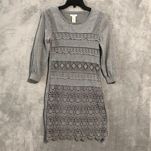 Sundance Tunic Dress Sweater Crochet Womens XS Gray Lace Embroidered Knit