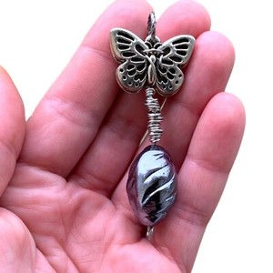 Silver Butterfly & Cocoon Pendant Handmade Wire Wrap Transformational Jewelry