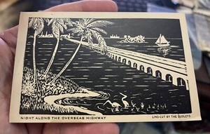 Lino-Cut Dudley Arts & Craft Postcard Night Overseas Highway Key West Florida