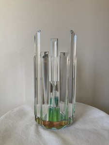 Vintage Blenko 8813m Art Glass Paper Bag Vase Green Handmade In USA