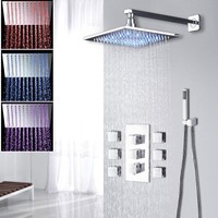 Thermostatic Large 16" Rain Top Shower Head 6 Massage Body Jets With Hand Shower