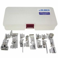 These feet make the overlock much more versatile--who knew all the things that can be done with these feet! They came in a very nice storage box that clicks to close so the feet cannot spill out. and each foot has a sheet of instructions in various languages. Includes blind hem/guide foot (no more wiggly seam lines); bottom hemming footthat blid stitches ad overlocks); gathering foot; cordig foot; elastic tape foot; curve/perl foot; berading foot; and piping foot.