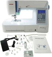 1 of 1 found this helpful I am thrilled with my new Janome Skyline S5. I have found it very easy to use and a huge step up from my Singer Quantum Stylus 9960. It came with a good variety of presser feet and the included DVD was very helpful. I have already made several new things with it and am very pleased with the results.