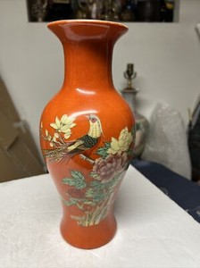 Vintage Chinese painted flower and bird porcelain vase