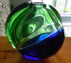 European Blown Glass Vase Cobolt Blue & Green